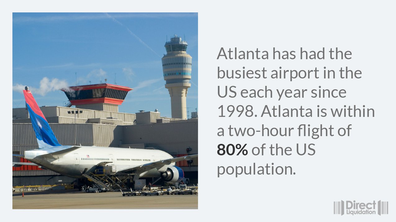 - Atlanta is the largest aviation hub in the country - and has been the busiest airport in the US each year since 1998.