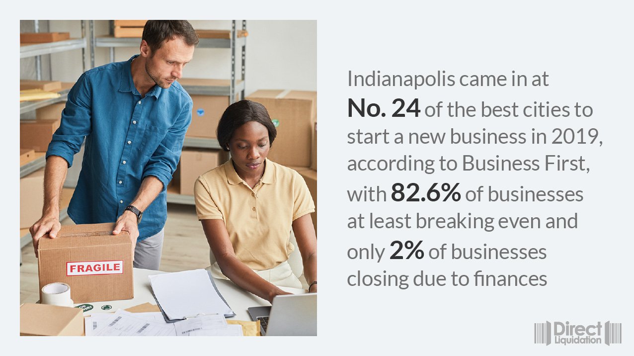 - Indianapolis came in at No. 24 of the best cities to start a new business in 2019, according to Business First, with 82.6% of businesses at least breaking even and only 2% of businesses closing due to finances.