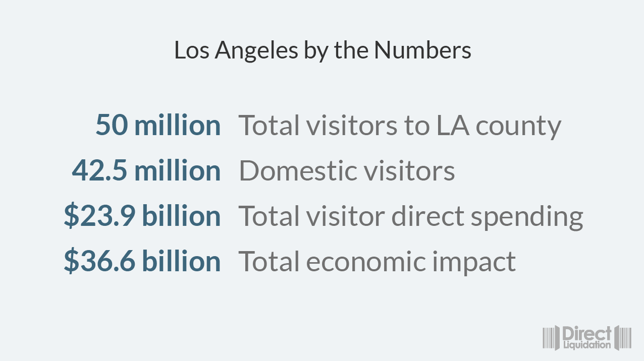 There are 88 cities in Los Angeles County with a combined market of more than 18.8 million people. This is an enormous market for any local business to tap into. The pandemic has hit the area hard - More than 40 major retailers declared bankruptcy and more than 11,000 stores closed in 2020 in Los Angeles. More have closed in the years since, leading to an abundance of closeout merchandise in the area. Over 7500 businesses (many in multiple locations) have permanently closed, with the loss of over 400,000 jobs in LA County since the beginning of the pandemic, of these the greatest hit communities are the low-income minorities. On top of these job losses, the Los Angeles area suffers from one of the nation`s worst income inequalities. While there are many high-income earners, especially in the tech and entertainment sectors, there is also an enormous low-skilled population working in restaurants, hotels, janitorial services and back offices. In Los Angeles, between 1980 and 2015, inflation-adjusted pay rose by just 3% for those in the bottom 10%. LA was once an enormous manufacturing center. But since 1990, manufacturing jobs have dropped from about 850,000 to 350,000. There are high levels of poverty in South Los Angeles as well as in parts of Boyle Heights, Hollywood, the San Fernando Valley, Northeast Los Angeles, and areas around the Port of Los Angeles. 89% of areas with concentrated levels of poverty are located near Downtown and in South Los Angeles, with some also in the Valley and Harbor areas. These areas are best suited to discount stores. As well as the permanent population, Los Angeles hosts around 50 million visitors per year. A staggering number of potential customers: Visitors to Los Angeles by the numbers:- Total Visitors to Los Angeles County 50 million