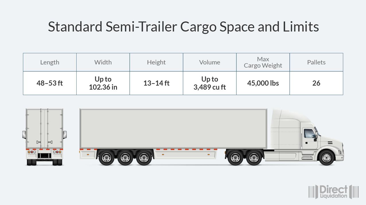 Moving up from unmanifested pallets to a full truckload requires considerable investment and more from you in terms of planning and processing. A full truckload of merchandise is 26 pallets and comes in a 53 foot trailer.Space Considerations