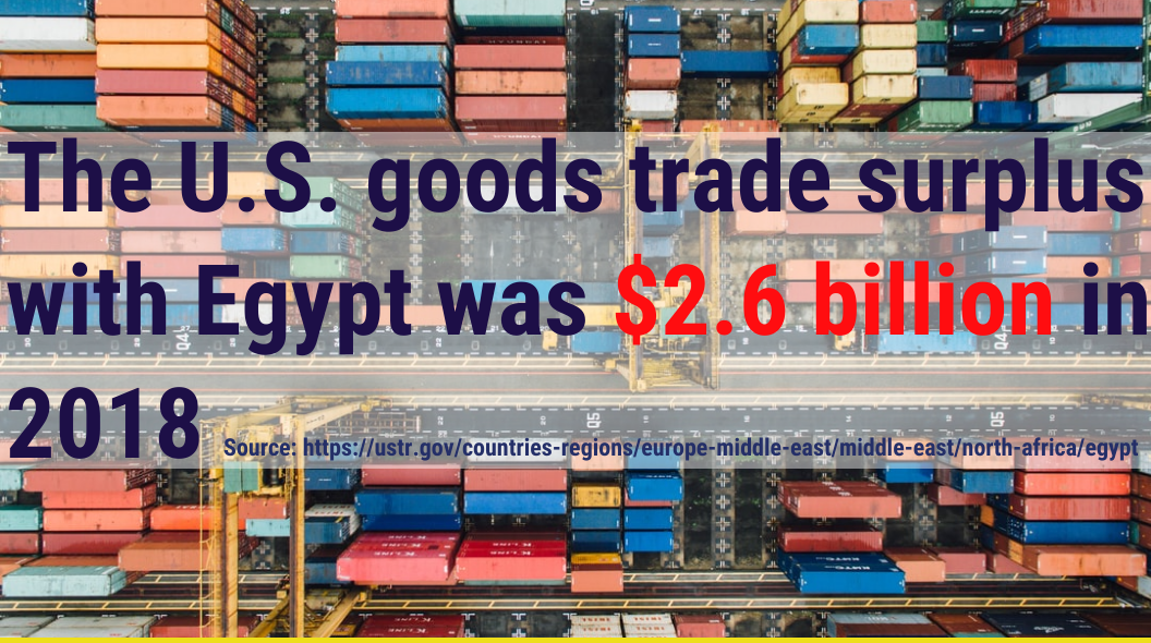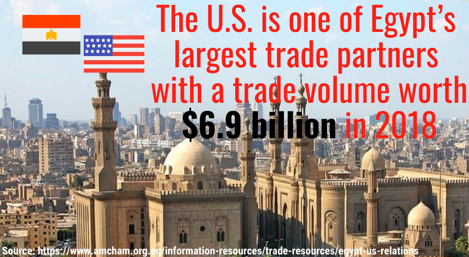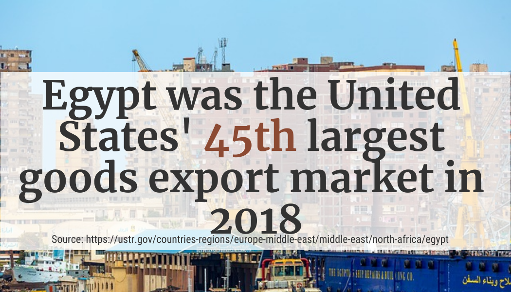 With a population of almost 100 million and a GDP of $335 billion, Egypt is an important economic partner of the United States. The economic ties between the two countries remain strong. Egypt is the 45th largest goods export market globally and the third-largest in the Middle East for U.S. goods and services.
