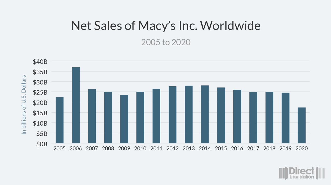 - Macy’s has net sales since 2005 of $414 billion (through 2020).