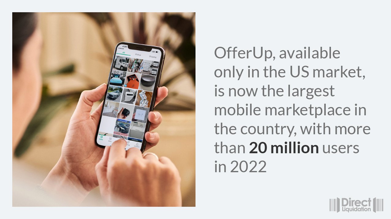 - OfferUp, available only in the US market, is now the largest mobile marketplace in the country, with more than 20 million users in 2022.