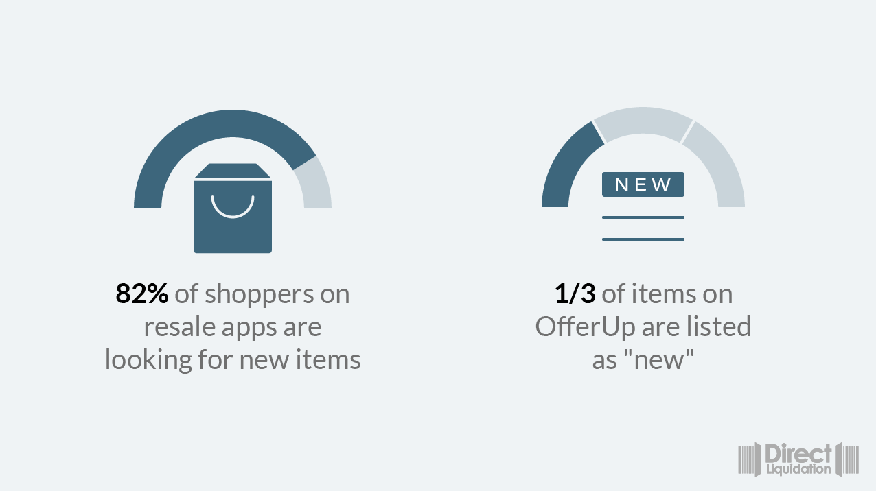 - 82% of shoppers on resale apps are looking for new items, and more than one-third of all items on OfferUp is listed as ’new.’