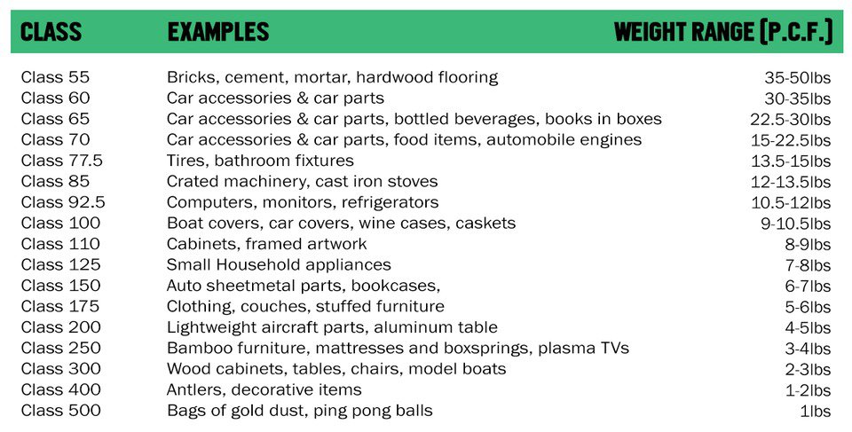Examples of the different freight classifications can be seen below: